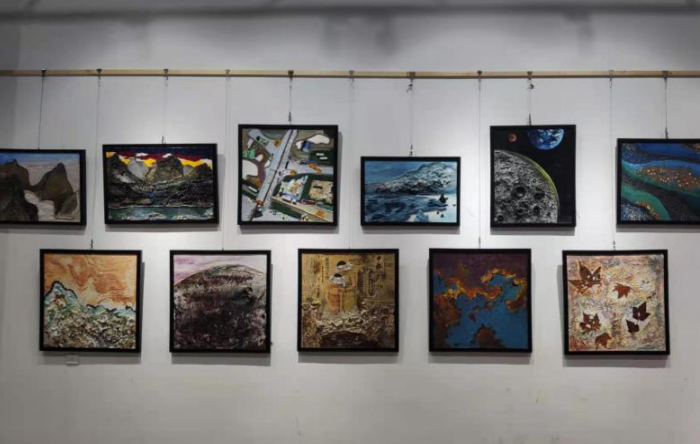 本次展出的作品,创造性地利用了各种自然、工业的材料,突破传统艺术对材料的限制,在创作手法上结合绘画的技巧,并采用拼贴、拓印、缝线、灌浆、喷绘、泼洒、厚堆等多种技法,作品内容丰富,立意深刻。为让观赏者更好地了解每一幅作品,并与作者展开线上交流,每幅作品旁都标注了作品介绍及作者二维码的卡片。