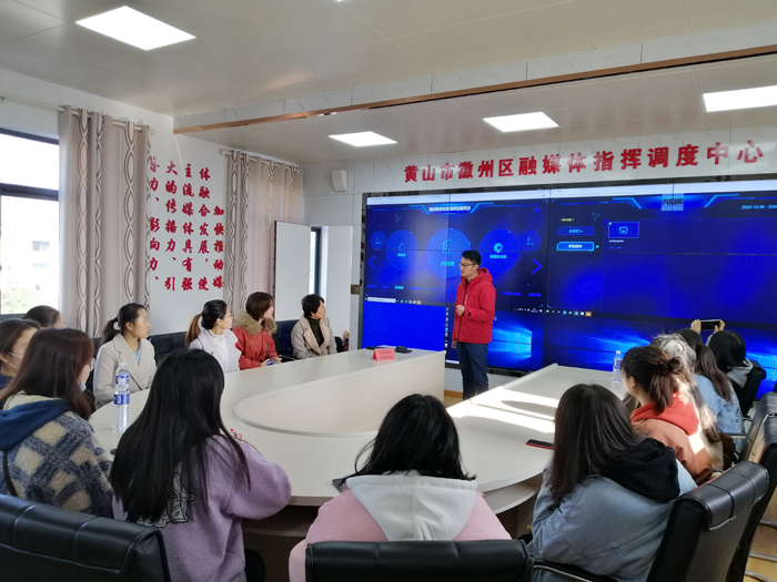 为加强融媒体中心学生记者之间的交流,提高融媒体中心记者的思想素质和业务能力,开阔其视野,12月13日,党委宣传部老师带领融媒体中心大学生记者团成员一行40人赴徽州区融媒体中心等 地参观学习。