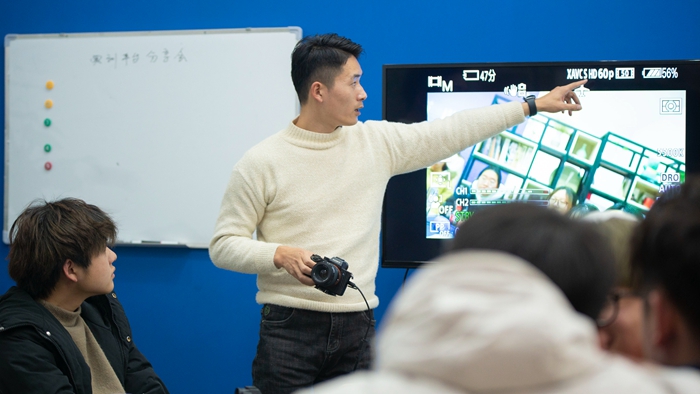 分享会上,五维电影工作室创始人刘杰从宣传片的前期文案创作,中期设备选择和拍摄注意事项,以及后期影视剪辑三个部分向同学们讲述了一部宣传片的制作过程。每步操作流程都用具体案例为同学们作讲解,深入浅出、生动有趣的讲解让同学们受益匪浅。