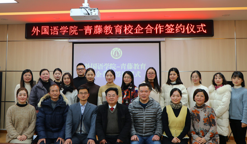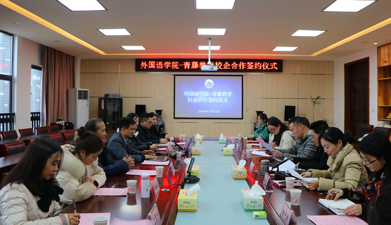 12月25日下午三点,外国语学院二语习得研究实践基地签约和授牌仪式在院会议室顺利举行。该院党委书记、院长黄先进与安徽青藤教育科技有限公司创始人唐先龙代表合作双方在校企合作协议上签字。该院党委副书记、纪委书记张文静主持签约仪式。
