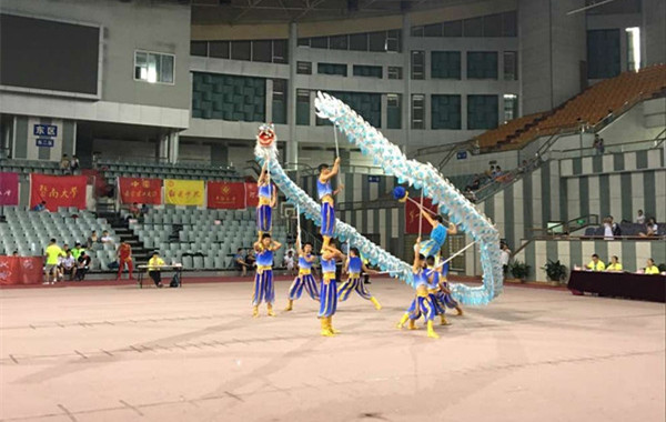 我校男子舞龙队于半年前组队,12名队员利用课余时间,在教练员李谋涛、白雪松的指导下,苦练基本功、强化体能训练、熟悉基本套路、不断创新提升。暑期以来,舞龙队冒着高温酷暑进行了为期半个月的强化集训,开展技艺训练和战术演练。在参加的本次锦标赛的预赛和决赛的较量中,我校运动员顽强拼搏、冷静应战、发挥稳定,在战术比拼和技能展示中表现突出,获得裁判员和观众的认可,并最终取得佳绩。
