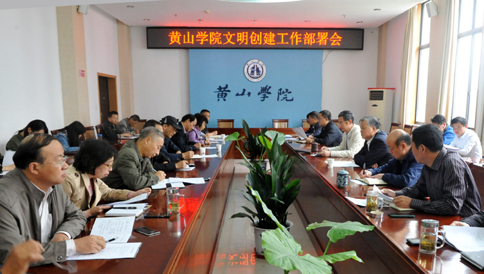 叶军主持会议并讲话。他说,此次在全校范围内集中开展文明校园创建活动是根据省文明办、省高校工委关于精神文明建设的部署和要求,根据校党委、校行政2016年工作要点安排,积极参与黄山市全国文明城市创建工作,为学校申报省第十一届文明单位营造氛围、奠定基础而进行的。为抓好下一步的文明创建工作,叶军要求,思想上要高度重视,工作上要抓落实,加强动员部署,责任到人,要有具体行动;要抓住难点,持之以恒、常抓不懈,广大师生员工要以良好的精神面貌带好头、作表率。要加强督查,建立跟踪问责制度,确保文明创建工作取得实效。