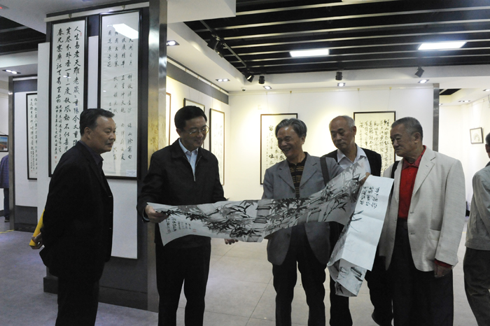 丹青敷彩歌盛世,翰墨飘香颂和谐。由校工会、离退休工作处主办的庆祝中国共产党成立95周年暨红军长征胜利80周年书画摄影展于10月24日开幕。校党委书记汪枫,校长汪建利,副校长胡家俊,党委副书记、纪委书记叶军,副校长胡善风参观展览。