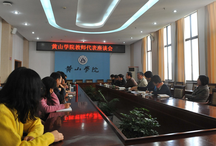 11月3日下午,我校在逸夫图书馆三楼会议室召开教师代表座谈会。校长汪建利、副校长胡善风出席会议,听取来自16个院部的30余名教师对学校改革发展的意见和建议。