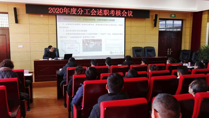 1月18日下午,2020年度二级分工会述职考核会议在文昌楼南楼211会议室召开。校工会委员、各二级分工会负责人参加会议,会议由校工会主席戴小宁主持。