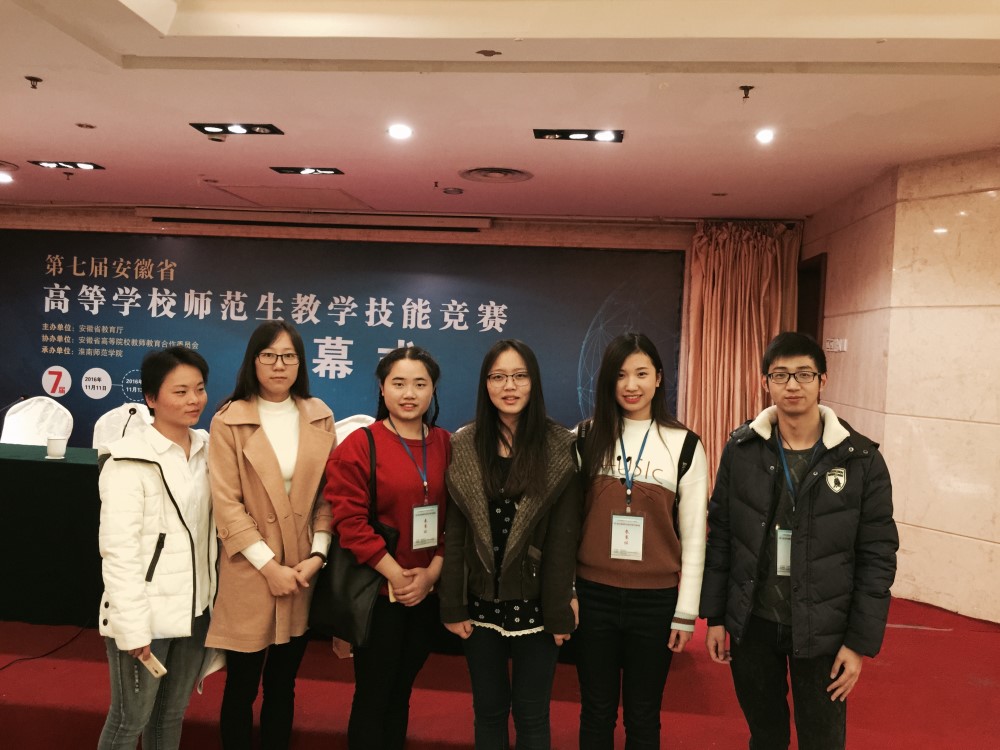 11月11至13日,第七届安徽省高等学校师范生教学技能竞赛在淮南师范学院举行。我校选派6名选手参加普通组、学前组两个类别比赛,参赛选手准备充分,发挥稳定,获得一等奖2项,二等奖4项,同时获得团体二等奖,取得了可喜成绩。