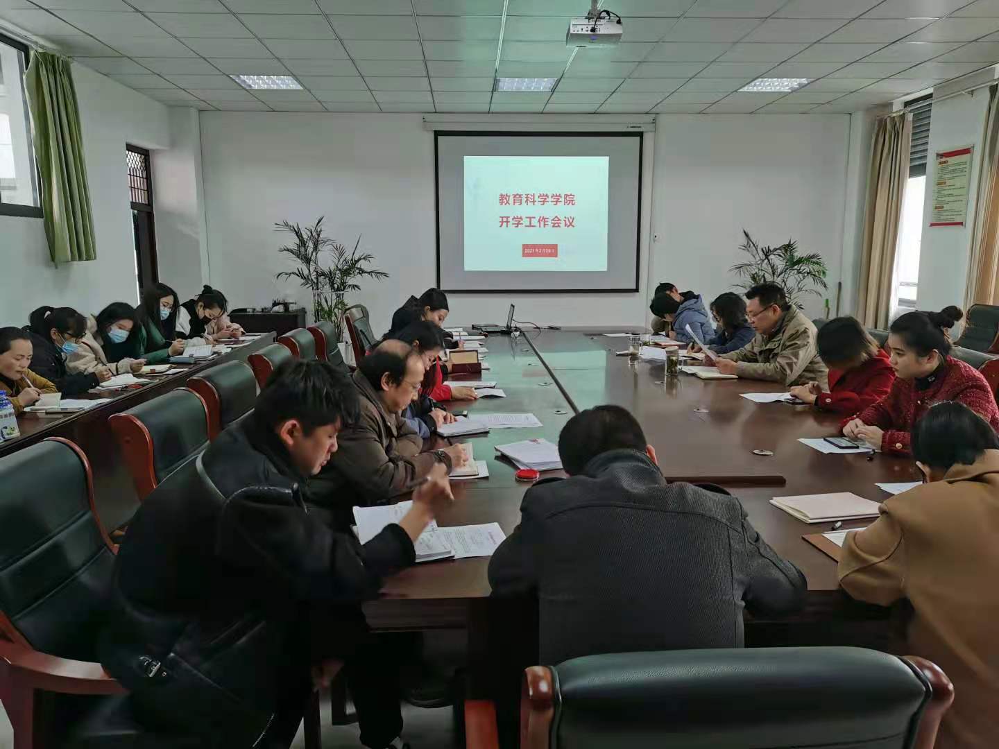 2月28日下午,教育科学学院在该院会议室召开新学期开学工作会议,部署新学期重点工作,开展2020年度教职工师德考核。会议由该院党总支书记余南宁主持,全体教师参加会议。