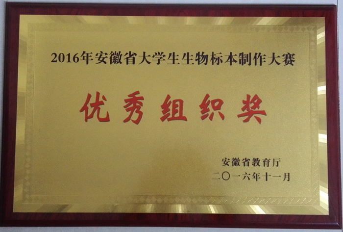 11月25日至27日,由安徽省教育厅主办、安庆师范大学承办的“2016年安徽省大学生生物标本制作大赛”落下帷幕,我校团委和生环学院选送的8件作品全部获奖,共获得一等奖3项、二等奖4项、三等奖1项。