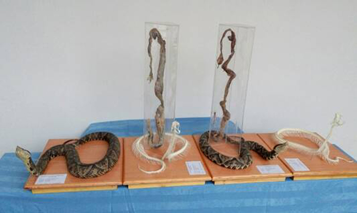 动物组一等奖作品:《全面认识五步龙——尖吻蝮剥制、骨骼、内脏原色标本》