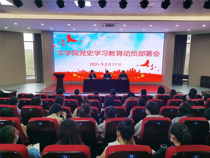 3月17日下午,文学院在文端楼二楼报告厅召开党史学习教育动员部署会,学习贯彻习近平总书记在党史学习教育动员大会上的重要讲话精神,贯彻落实学校党史学习教育动员部署会精神,就该院扎实有效地开展党史学习教育进行动员部署。该院领导班子成员、全体师生党员参加会议。该院党总支书记汪方学作动员讲话,副院长沈昌明主持会议,党总支副书记周志荣解读《文学院党史学习教育工作方案》。