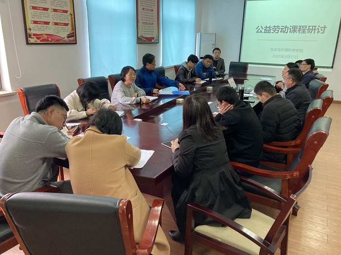 为进一步贯彻习近平新时代中国特色社会主义思想和全国教育大会精神,坚持立德树人,培养德智体美劳全面发展的社会主义建设者和接班人,不断提升本科人才培养质量,3月17日下午,生命与环境科学学院在该院三楼会议室召开《公益劳动》课程研讨会。会议由副院长潘健主持,学院党政领导以及本学期公益劳动课程指导教师参会。