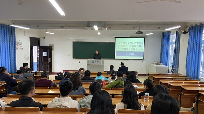3月17日下午,数学与统计学院在横江校区教学楼1402召开党史学习教育和新一轮深化“三个以案”警示教育动员部署会。会议由党总支书记方继光主持。学院全体师生党员参加会议。