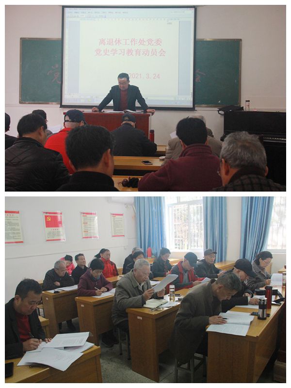 3月24日,离退休工作处党委在横江校区原物理楼老年多媒体教室召开党史学习教育动员会,离退休分党委委员、各党支部书记和支部委员、在职的党员干部参加了动员会。动员会由离退休分党委书记王有青主持。