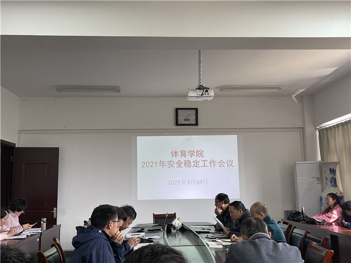 3月24日下午,体育学院在风雨操场三楼会议室召开安全稳定工作会议,该院全体教职工参加会议,会议由院党总支书记杨和健主持。
