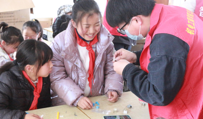 活动伊始,志愿者认真准备前往谭家桥小学的工作,活动过程中志愿者绘声绘色的给同学们讲述发电机的发展历史以及工作原理,同时借助有趣的视频让小朋友们了解到其中的知识,在志愿者的讲解以及帮助下,小朋友们对发电机有了更多的了解。小朋友们在志愿者的指导下完成了属于自己的发电机风扇。活动最后,小朋友们拿着自己的作品和志愿者合影留念。