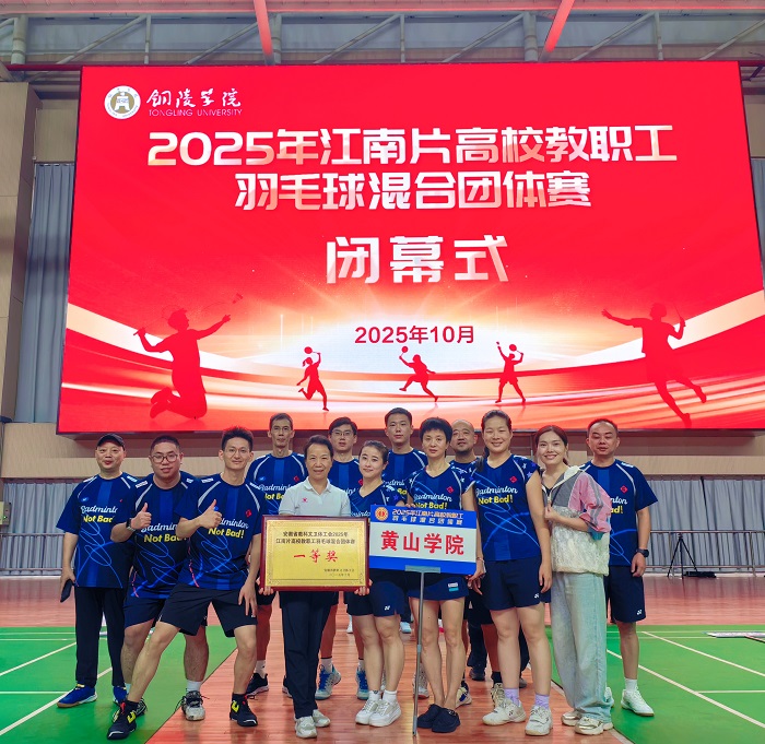 10月10日至12日,由安徽省教科文卫体工会主办,铜陵学院承办的2025年江南片高校教职工羽毛球混合团体赛在翠湖校区风雨操场羽毛球馆举行。经过两天的激烈比拼,我校教职工羽毛球代表队荣获一等奖(第二名)。