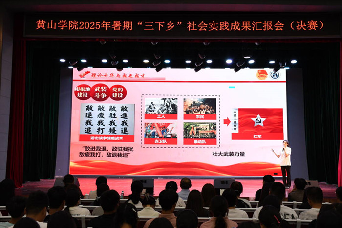 10月11日下午,黄山学院2025年大学生暑期“三下乡”社会实践成果汇报会决赛在大学生活动中心举行。校党委委员,副院长张小明,共青团黄山市委书记孙洁出席活动,办公室、宣传部、学生处、马克思主义学院等院部负责人出席活动并担任评委,千余名师生代表参与活动。