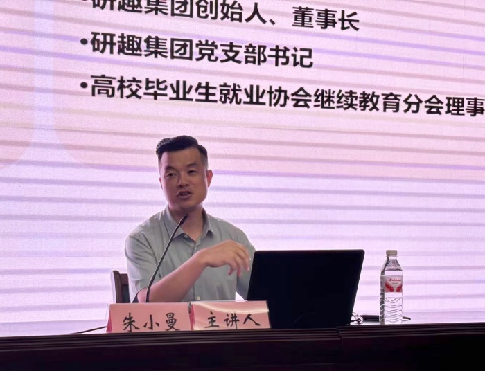 朱小曼校友结合自身经历,从认识大学、目标规划等方面分享,强调大学是人生起跳点与“弯道超车”机会,激励新生明确人生航向。针对大学生各阶段迷茫现状,提出“大一夯基础、大二聚核心、大三全力冲、大四接社会”的分阶段规划。随后他对“研趣大学通”大学生职业规划陪跑营的核心工作内容进行全面解读,详细介绍了研趣集团“大学生涯AI陪跑系统”与陪跑营课程体系设计,借助人工智能生成定制报告,提供任务提醒、导师答疑等服务,旨在帮助学生精准锚定职业定位,全方位提升核心就业能力。