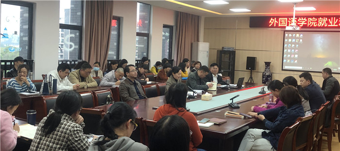 3月31日下午,外国语学院在逸夫综合楼5402会议室召开2021届毕业生就业工作推进会,院党委书记、院长黄先进,副院长洪常春,党委副书记、纪委书记张文静,各教研室主任、支部书记、论文指导教师、学生导师、全体辅导员参加会议,会议由黄先进主持。