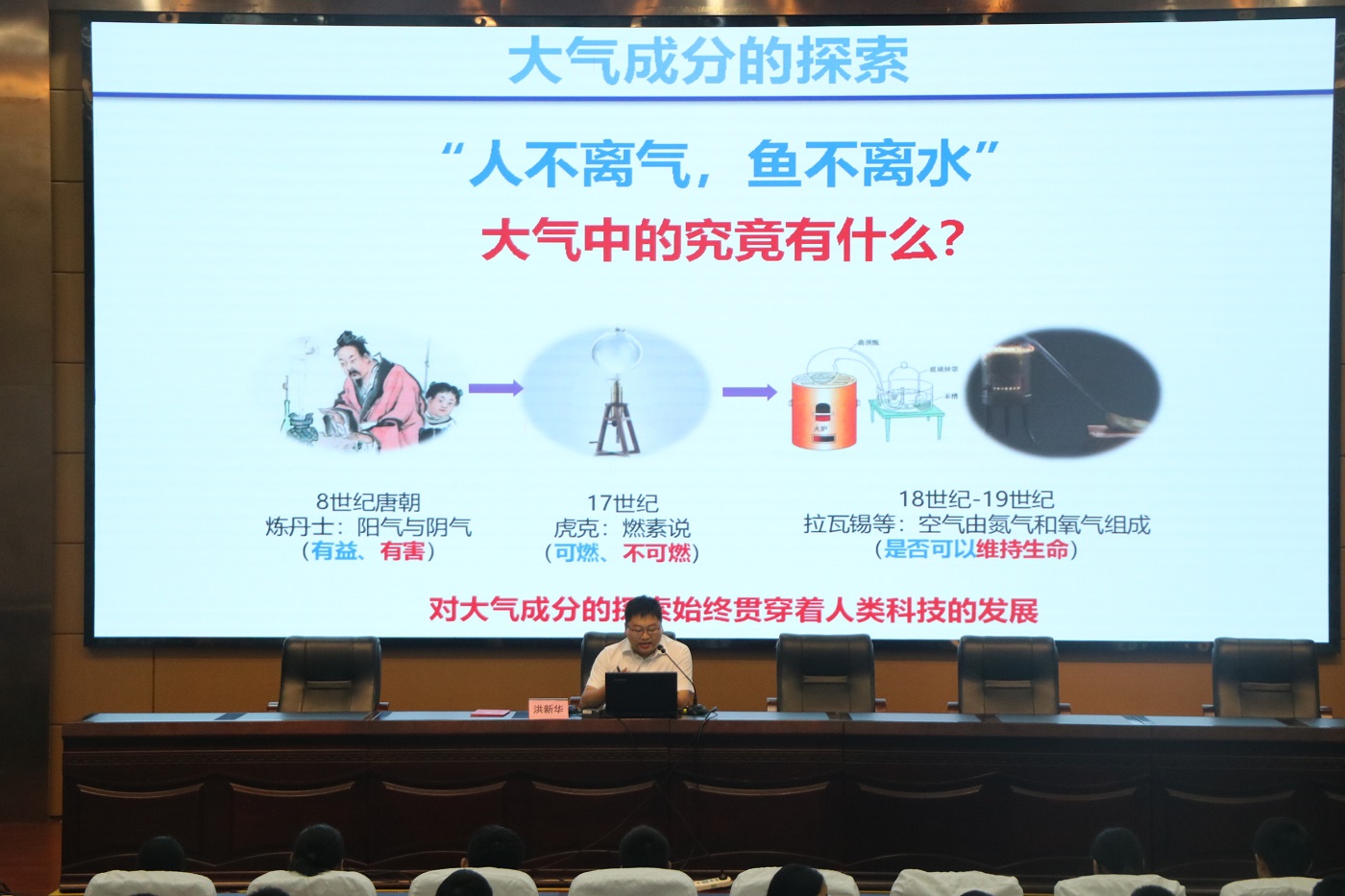 10月15日下午,由共青团黄山市委、生命与环境科学学院及黄山市少工委联合主办的“科技之光 耕读讲坛”--青年科学家进校园系列活动第一期,在屯溪五中圆满落幕。生命与环境科学学院环境科学专业教师洪新华博士担任主讲人,以“解密空气的隐形密码--超光谱遥感带你揭开大气的面纱”为主题,为同学们带来一场兼具科学性与趣味性的前沿科技科普课。
