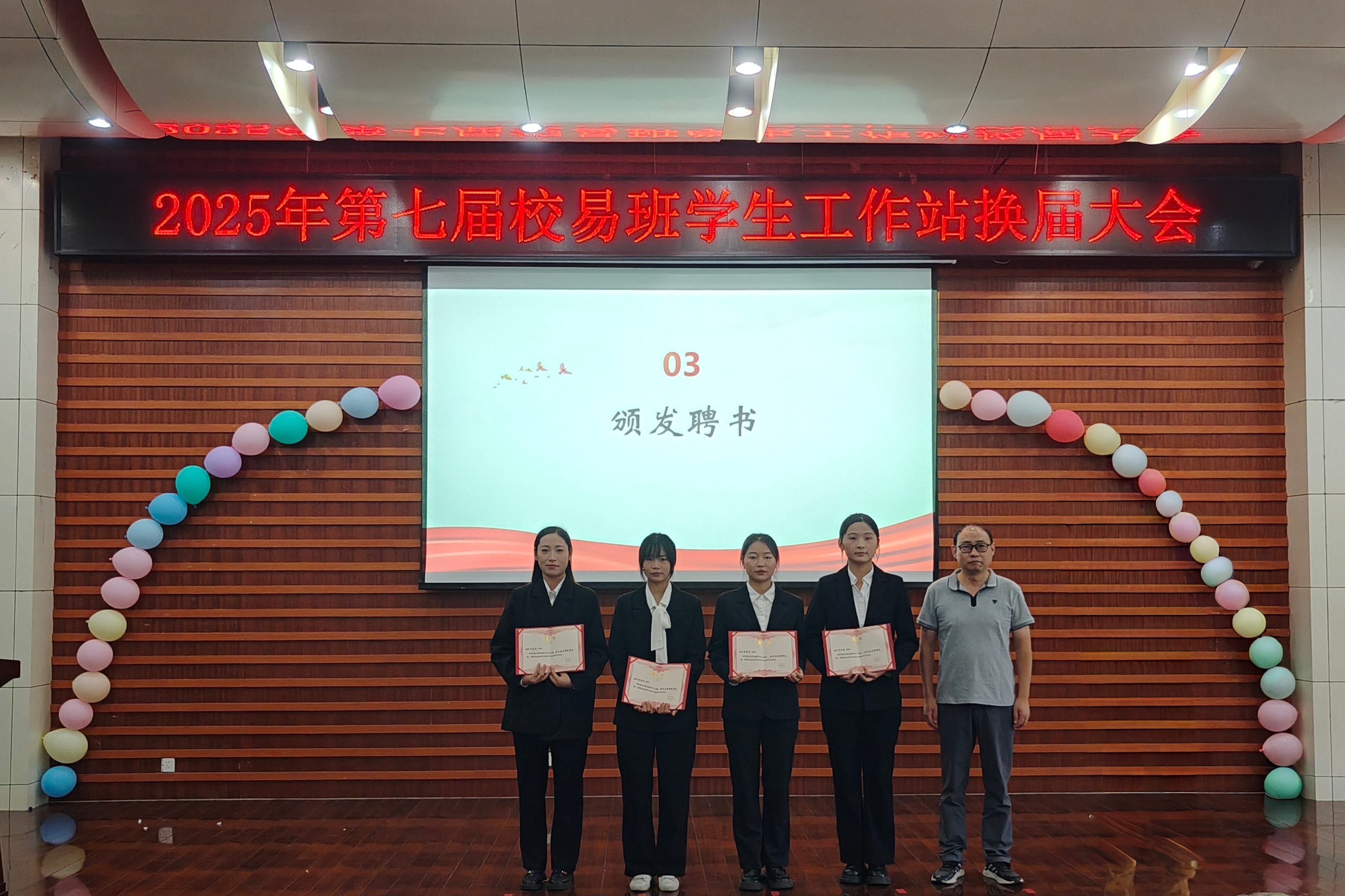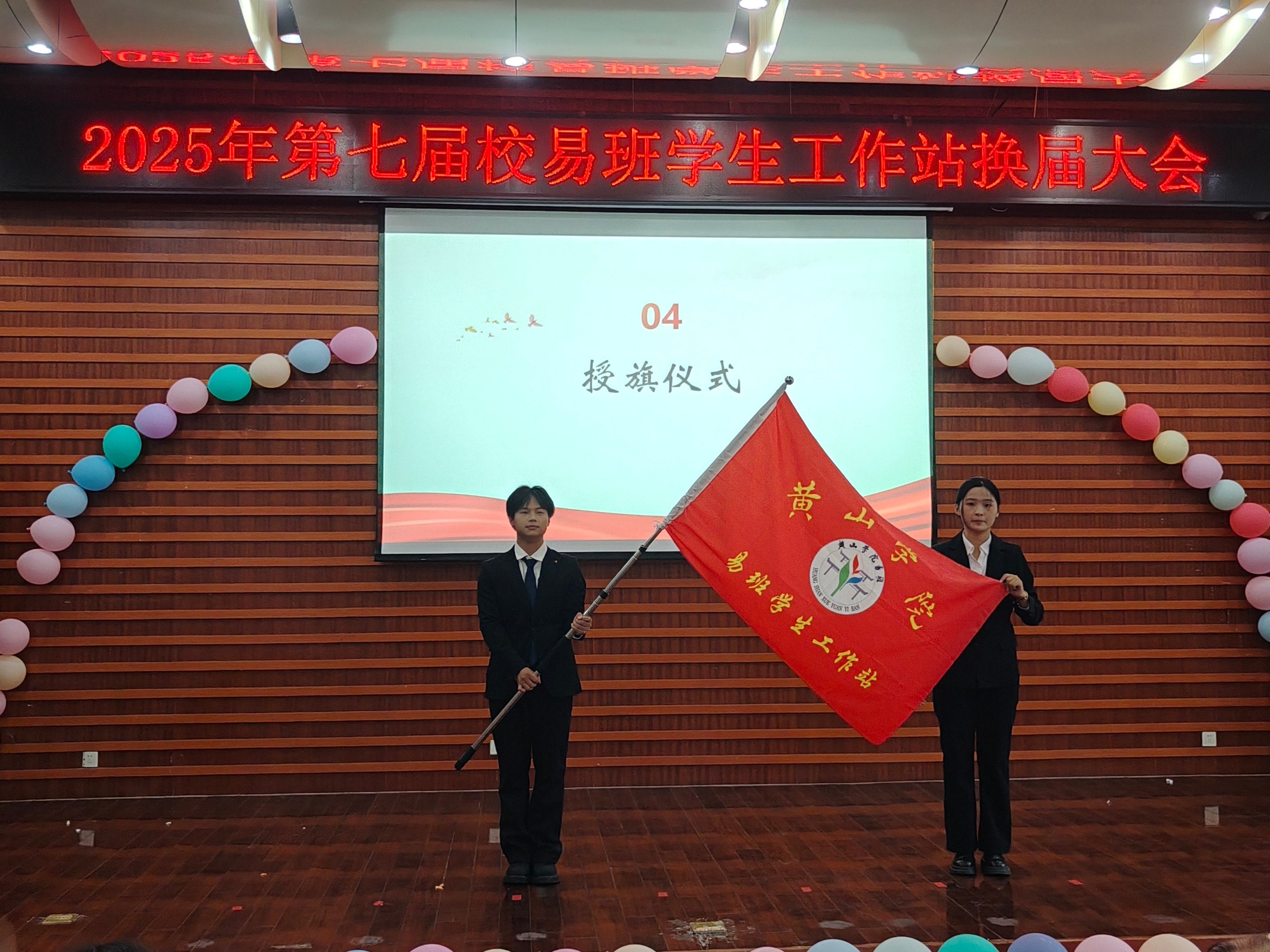 换届大会流程包括宣读理事会成员名单、颁发聘书、授旗、代表发言和总结等环节。汪月红宣读了新一届易班学生工作站理事会成员名单,与会教师为第七届理事颁发聘书并合影留念。授旗仪式庄严举行,象征着责任的传递与品质的传承。