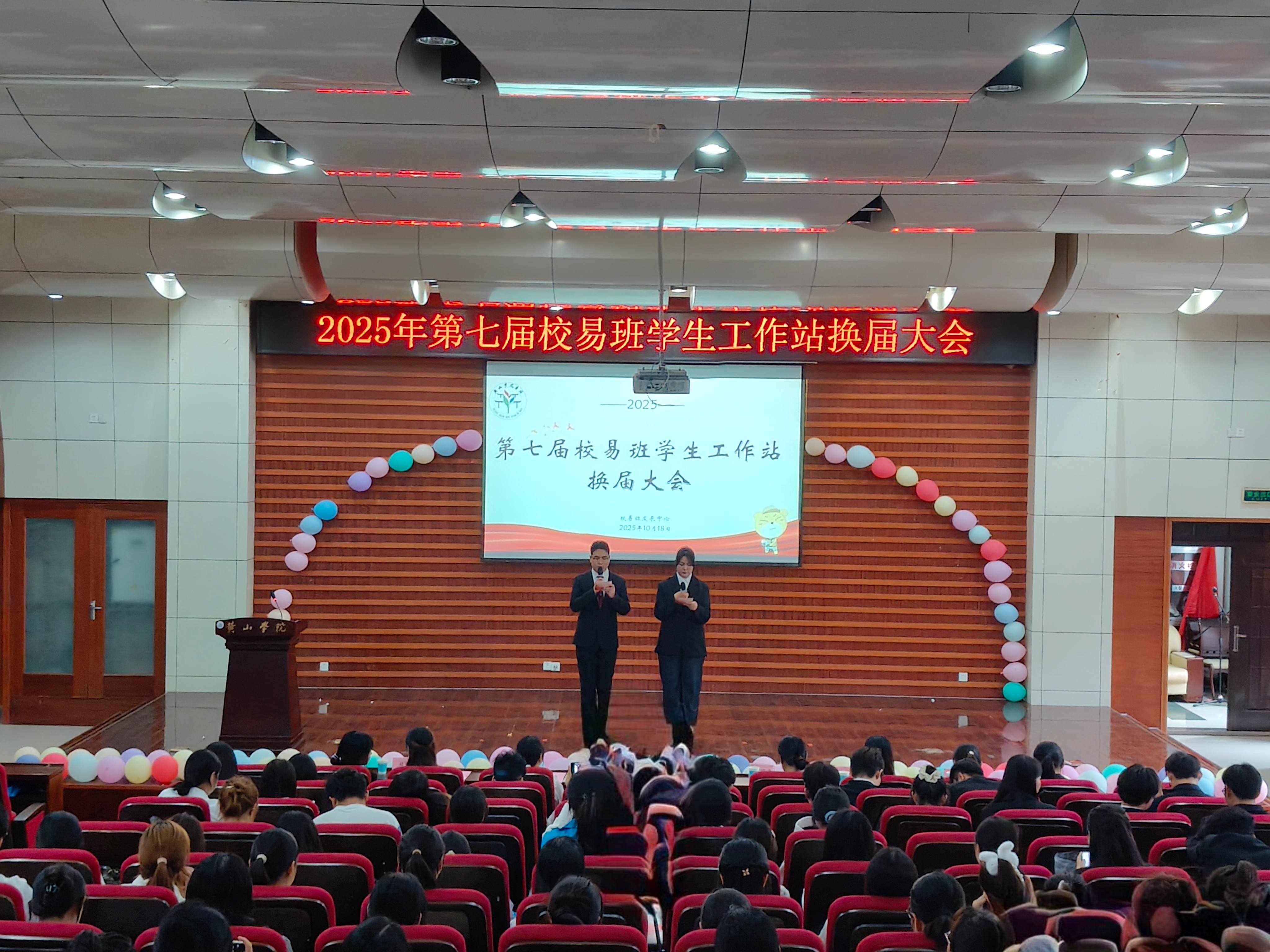 10月18日下午,第七届校易班学生工作站换届大会在图书馆二楼报告厅召开。学生处相关负责人、校易班指导老师、第七届校易班学生工作站全体成员、第八届校易班学生工作站站员代表、各学院易班工作站代表及各班级易班班长代表出席本次会议。