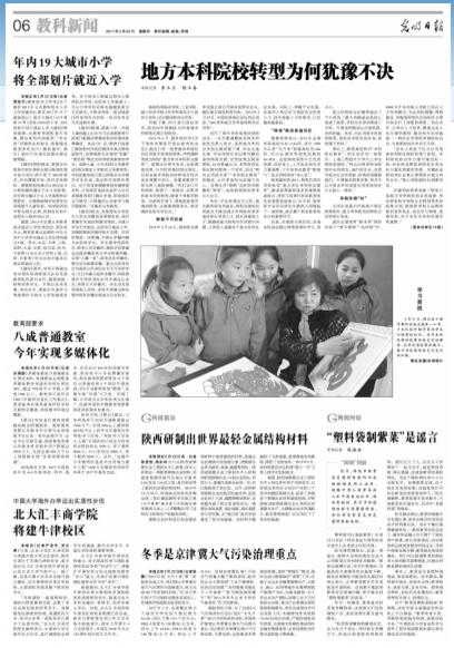 2月23日,《光明日报》第6版以《地方本科院校转型为何犹豫不决》为题剖析了地方本科院校转型发展问题。报道第三部分以“早转早得‘利’”为题肯定了我校应用型深度转型的举措和成效。