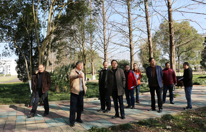 3月2日上午,校党委书记汪枫,党委副书记、校长汪建利,党委副书记、纪委书记叶军,副校长胡家俊、胡善风在办公室、总务处、后勤集团等部门负责人陪同下,实地考察校园环境建设,召开现场办公会。