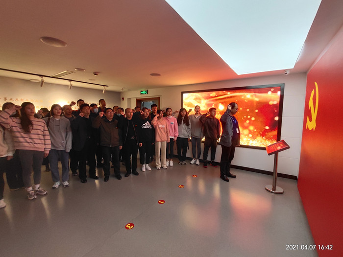 大家一边仔细聆听讲解,一边观看了馆内的珍贵实物、文字信件、图片等,重温了革命先辈书写的可歌可泣的英雄史诗。随后,全体参观人员面对鲜红的党旗,齐声宣读入党誓词,接受了一次深刻的党性教育,汲取奋进力量。大家纷纷表示,要以本次参观学习为契机,不忘初心、牢记使命,扎实做好本职教育工作,为体育学院的发展做出自己的贡献。