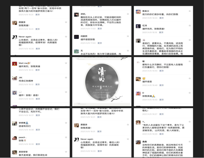 青山埋忠骨,英雄铸华魂。又是一年清明时,为缅怀先烈、学习事迹,艺术学院同步开展网络“云端”祭扫活动和VR参观杨业功纪念馆两项线上活动,共同铭记历史、缅怀英烈,此次线上活动共收集到留言200余条,观后感100余篇。