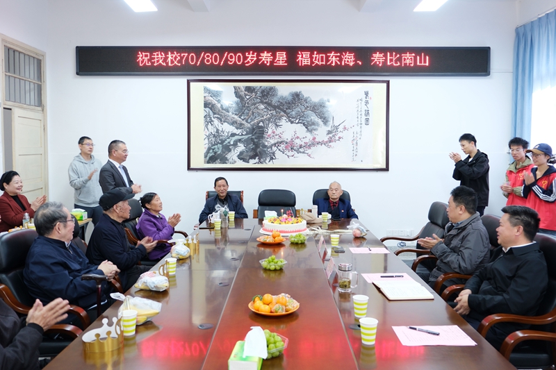 10月29日,重阳节当天,离退休工作处为学校年届70、80、90周岁的退休老同志精心组织了一场喜气洋洋的集体生日茶话会。