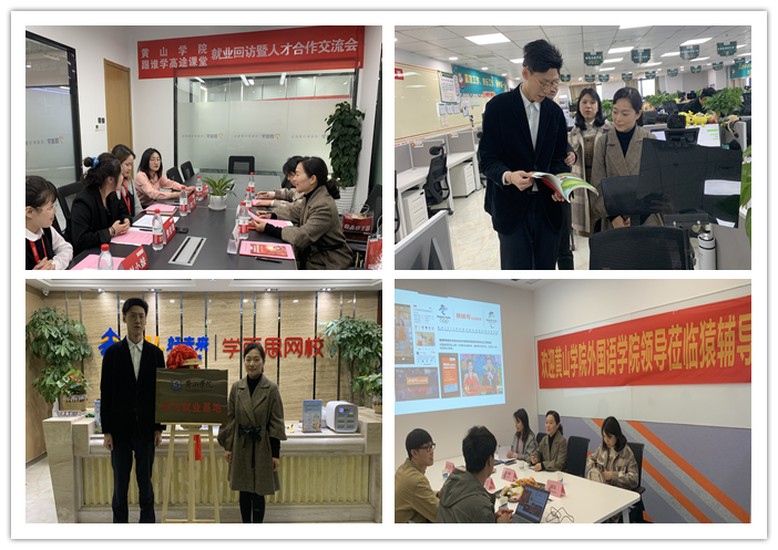 张文静一行实地考察了学而思网校合肥分校、高途课堂—跟谁学、猿辅导在线教育合肥分校、合肥京鹿格瑞教育投资有限公司,充分了解了企业的运营模式、文化理念、人才需求、工作内容、薪资待遇和发展空间,就后续合作开展见习、实习、就业工作洽谈,并与已入职学生进行深入座谈,充分了解学生的工作现状和就业满意度。与学而思网校和猿辅导在线教育在前期充分沟通的基础上,签订了校企合作协议,同时在学而思网校举办了就业基地挂牌仪式,