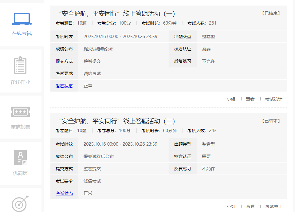 活动通过线上线下相结合,参与者在易班优课课群完成安全知识在线考试和课程学习,线下自行学习了解《学生手册》相关安全规章制度,增强突发安全事件的应对能力,形成自觉遵守安全规范的习惯。
