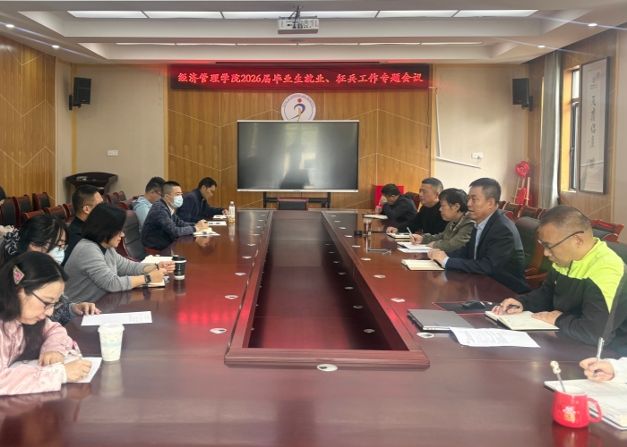 为统筹推进2026届毕业生就业与征兵工作,10月31日上午,经济管理学院在文华楼三楼会议室召开2026届毕业生就业、征兵工作专题会议。学院党委委员、各教研室主任、全体辅导员、学院就业征兵工作负责人等参加会议。会议由学院党委书记吴敏主持。