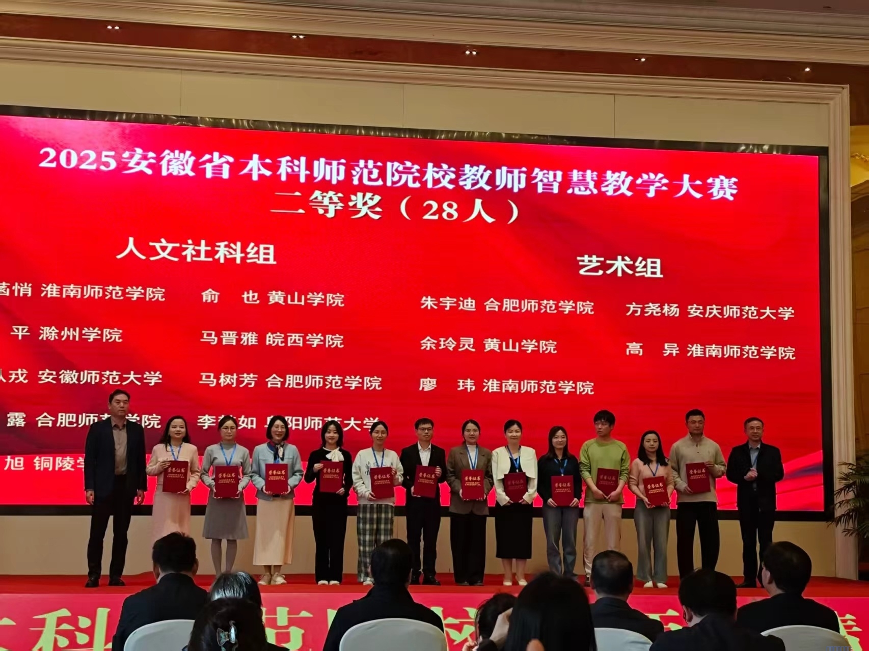 11月2日,2025年安徽省本科师范院校教师智慧教学大赛暨安徽省高等学校师范生教学技能竞赛在合肥师范学院落幕。经过2天激烈角逐,我校参赛师生团队共荣获教师组二等奖2项、三等奖3项,学生组三等奖3项。