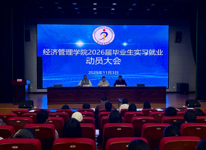 为推动毕业生实习就业工作有序开展,11月3日,经济管理学院在横江校区报告厅召开2026届毕业生实习就业动员大会。该院党委书记吴敏,党委副书记、纪委书记郜玉振,党委委员、副院长计东亚,各教研室和实验室主任、教学秘书、各毕业班辅导员,实验员与2026届全体毕业生参加会议。会议由郜玉振主持。