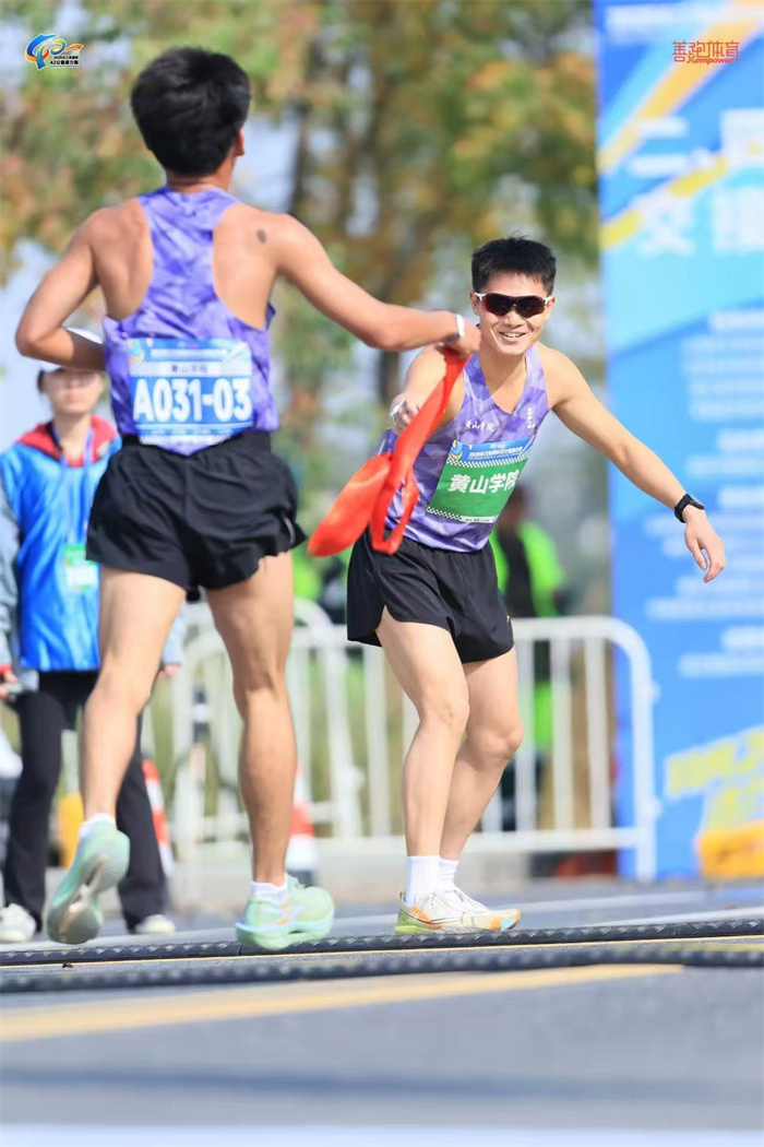 面对强敌环伺的严峻挑战,由经济管理学院的黄俊凯、李迎春、李凯和体育学院的李修恒、张育源5位同学组成的我校代表队毫无惧色、迎难而上。赛前,精心配置阵容(含1名女性选手),并提前敲定棒次顺序、反复演练交接流程。赛中,第一棒黄俊凯率先起跑,在众多顶尖选手的夹击下稳扎稳打,为团队奠定坚实基础;第二棒李迎春接续发力,凭借稳定发挥保持队伍竞争力;第三棒李修恒发挥体育专业优势,奋力冲刺缩小差距;第四棒张育源顶住压力、全力冲刺。