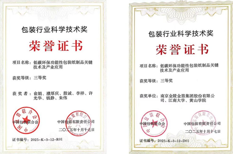 近日,包装行业国家级权威奖项——“包装行业科学技术奖”获奖名单正式揭晓。由南京金陵金箔集团股份有限公司、江南大学、黄山学院联合完成的“低碳环保功能性包装纸制品关键技术及产业应用”项目荣获2025年度三等奖,我校机电工程学院殷诚博士作为团队核心成员被授予个人荣誉证书。此次获奖,不仅是对殷诚博士个人专业能力与科研贡献的权威肯定,更彰显了机电工程学院教师在应用研究与产学研融合方面的雄厚实力。这也充分体现了该院在跨学科、跨单位协同攻关中扮演的关键角色。