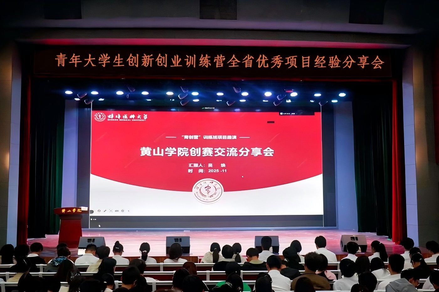 11月15日下午,校团委在率水校区大学生活动中心大礼堂举办黄山学院青年大学生创新创业训练营校外优秀团队经验分享会,特邀第十一届安徽省“挑战杯”学术科技竞赛银奖来自安徽农业大学的马乐璇、中国国际大学生创新大赛(2025)国家级铜奖来自蚌埠医科大学的吴焕、第十四届“挑战杯”中国大学生创业计划竞赛全国铜奖、第十八届“挑战杯”中国大学生课外学术科技作品竞赛黑科技专项赛铜奖、中国大学生创新大赛铜奖(2025)来自安徽师范大学的杨昊翔作经验分享,青创营全体学员参加此次活动。