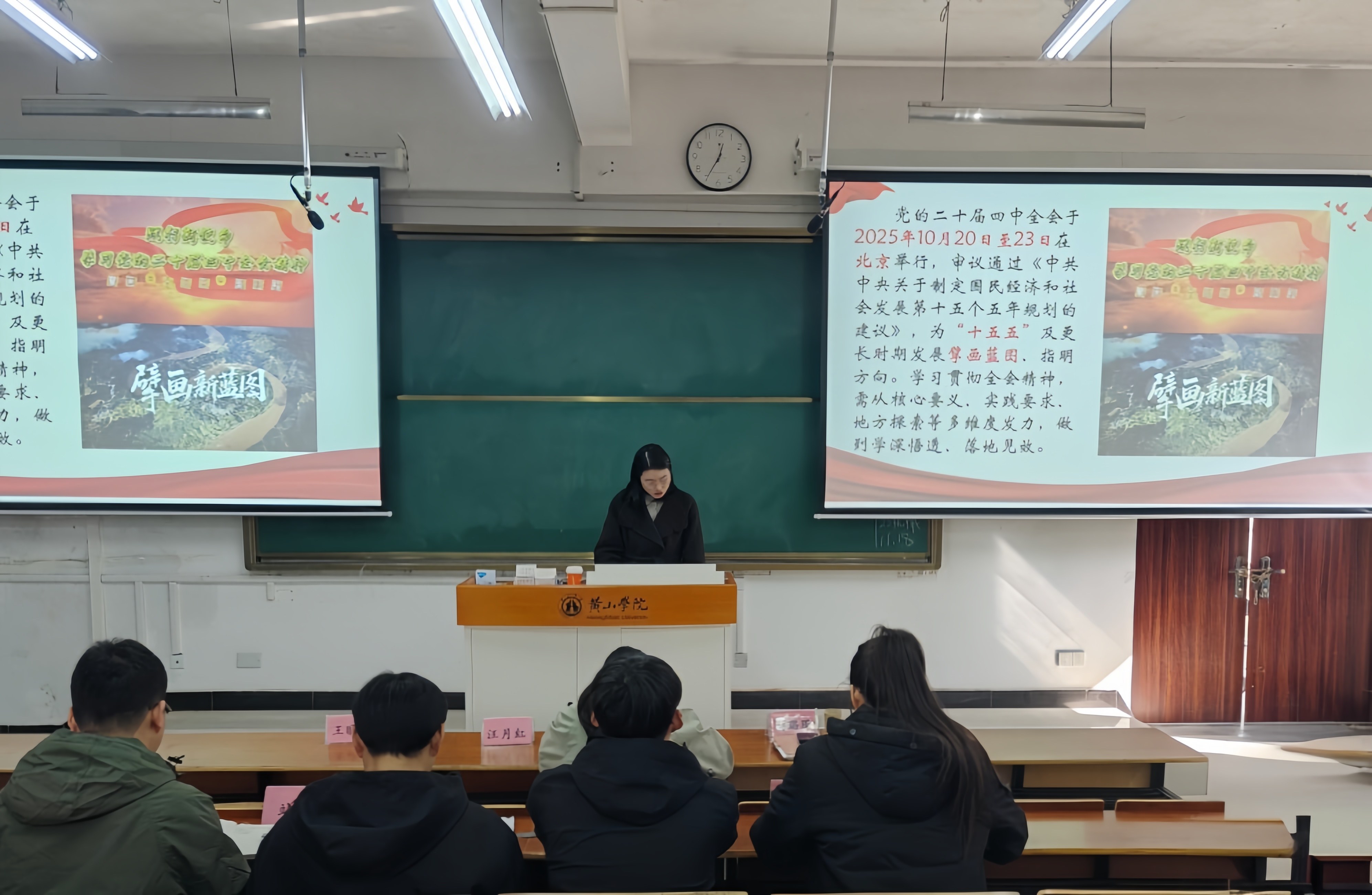 11月19日,易班发展中心在文渊楼1205教室举办“党的二十届四中全会精神”专题学习会。师生集中观看了全会精神解读视频,领会战略部署意义;蒋璐璐老师结合学生学业情况与实践活动实际,围绕“全会精神实践要求”和“青年使命担当”进行了宣讲,推动理论与学生生活融合;学生代表结合参与社会实践、学科竞赛等经历分享感悟,展现新时代青年初心风貌。