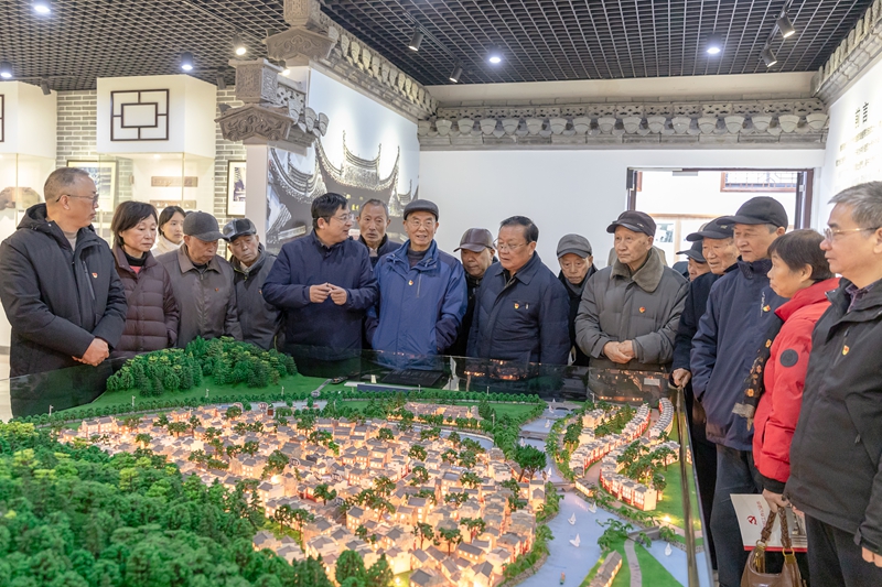 在建筑工程学院徽派展示厅,离退休同志们认真参观了徽派建筑模型、徽州雕刻装饰构件等展品,深入了解徽派建筑的历史渊源、工艺特色与文化内涵。老同志们不时驻足端详、交流探讨,对学院将地方文化与专业教学深度融合的做法给予高度评价,感慨传统建筑文化在校园里的传承与活力。