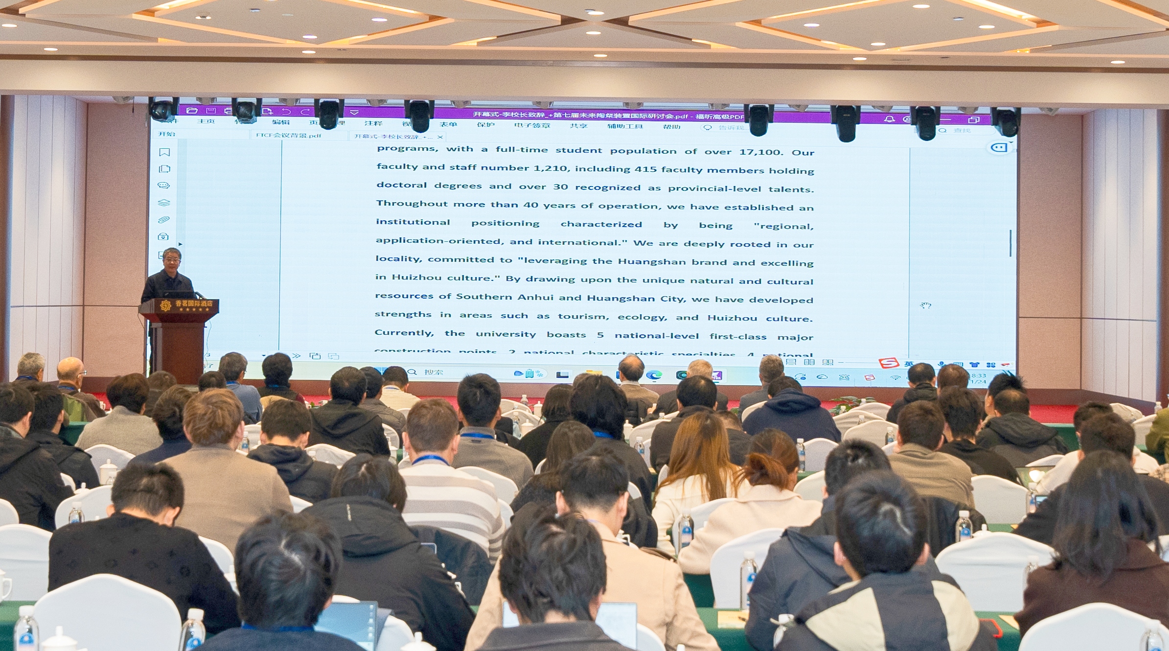 我校校长李庆宏、中国科学技术大学赵政国院士致开幕辞。李庆宏对国内外专家学者的到来表示热烈欢迎,介绍了黄山学院的办学历史与发展特色,同时希望与会学者在紧张的学术交流之余增进友谊,共同将本次会议办成一次令人难忘的学术盛会。赵政国指出未来陶粲系列国际会议历经十余年发展,已成为该领域不可或缺的重要学术交流平台,有效促进了陶粲前沿成果的分享与合作创新的深化。