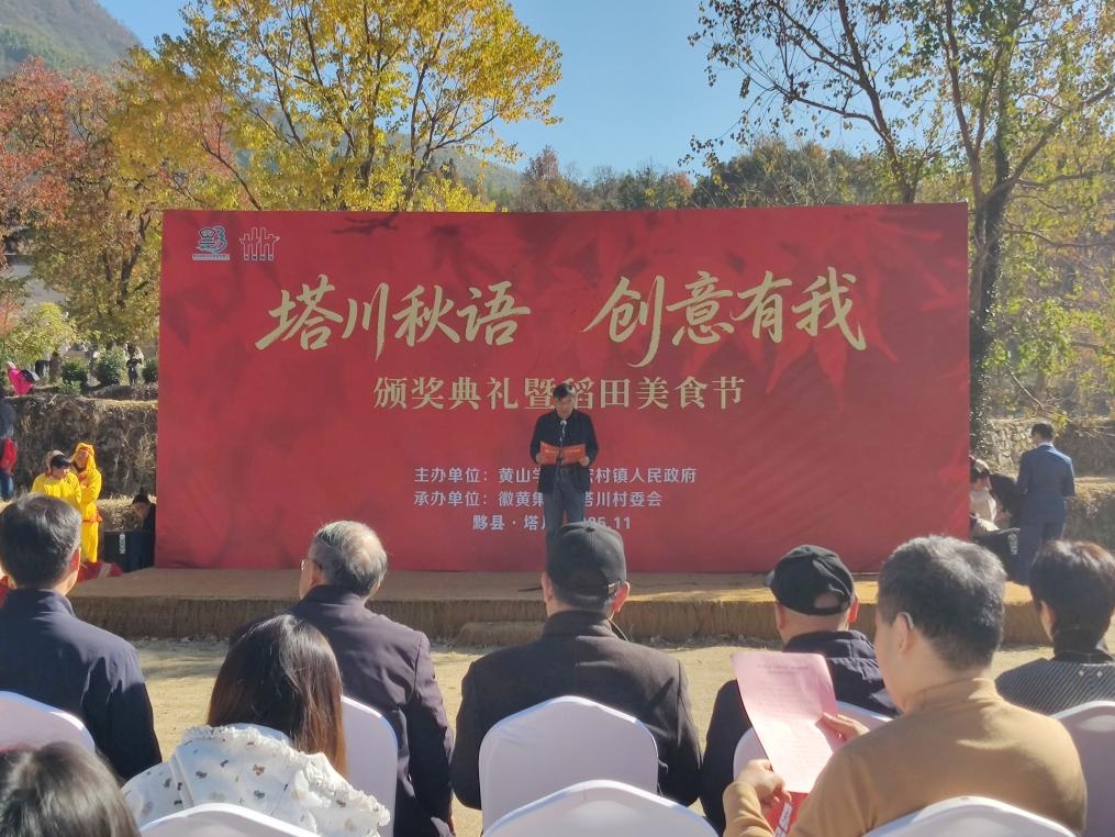 11月29号,“塔川秋语 创意有我”颁奖典礼暨稻田美食节在黟县塔川村塔川景区音乐广场圆满举行。黟县县委常委、副县长杨雪冰,我校党委宣传部正处级组织员汪家庚、文学院院长沈昌明、文化与新闻传播学院院长吕正兵、旅游学院院长姚李忠,以及黟县相关部门负责同志出席活动。旅游学院烹饪与营养教育专业教师黄玉海等全程参与并见证活动盛况。