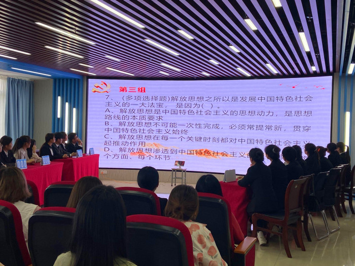 本次比赛参赛队伍由该院八个党支部组成,分为“必答题、抢答题、风险题”三个竞赛环节,分别采用轮流作答、选题作答、抢答等形式展开比拼。考题涉及党的革命史、党的发展史、党的建军史等详实的党史资料。各支部参赛选手认真答题,稳扎稳打,展现出扎实的党史理论功底,高超的答题技巧赢得现场观众阵阵掌声。本次比赛不仅考验参赛选手的党史知识储备,更比拼选手的勇气与自信。