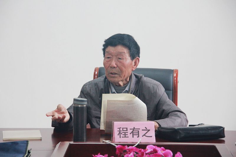 1958年入党的程有芝老党员是土生土长的隆阜人,他从六个方面介绍了隆阜村的简史:隆阜的地域变更,以戴姓(戴震的家史)为首的戴、吴、曹等几大姓的概况,抗日战争、皖南事变及三年解放战争的隆阜情况,隆阜的文化教育及民间艺术,隆阜的古祠堂(戴家祠堂)、古牌坊、古茶行、古树等,古祠堂、古牌坊等被毁的原因。他重点介绍了我校横江校区狮子台建筑是戴家祠堂的遗址,并有一棵400余年历史的古罗汉松。戴震是清代著名语言文字学家、哲学家、思想家,戴家祠堂坐落在我校横江校区校园内,这是我校的骄傲和自豪,是我校挖掘、弘扬和研究戴震学和徽州文化的宝贵财富。在学史明理活动中,我校要加大保护狮子台戴家祠堂古遗址的力度,增强我们的文化自信,让戴震学和徽州文化之花在校园内乃至徽州大地上绽放得更加鲜艳。