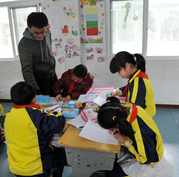 “虽然偶尔孩子们的吵闹让我有些不知所措,但更多的是我从孩子们身上得到的感动与欣慰。每当听到孩子们叫我‘老师’的时候,我全身就像打了鸡血似的,感觉自己身上有一份沉甸甸的责任。我是一个独生子女,以前很‘自私’,很不喜欢小孩子,但支教经历改变了我,让我发现了孩子的纯真可爱,他们总能触动我内心最柔软的部分,我准备去考教师资格证,毕业后做一名小学美术老师,为基础教育尽一份力。”谈起支教的事,15视觉传达的滕非滔滔不绝。