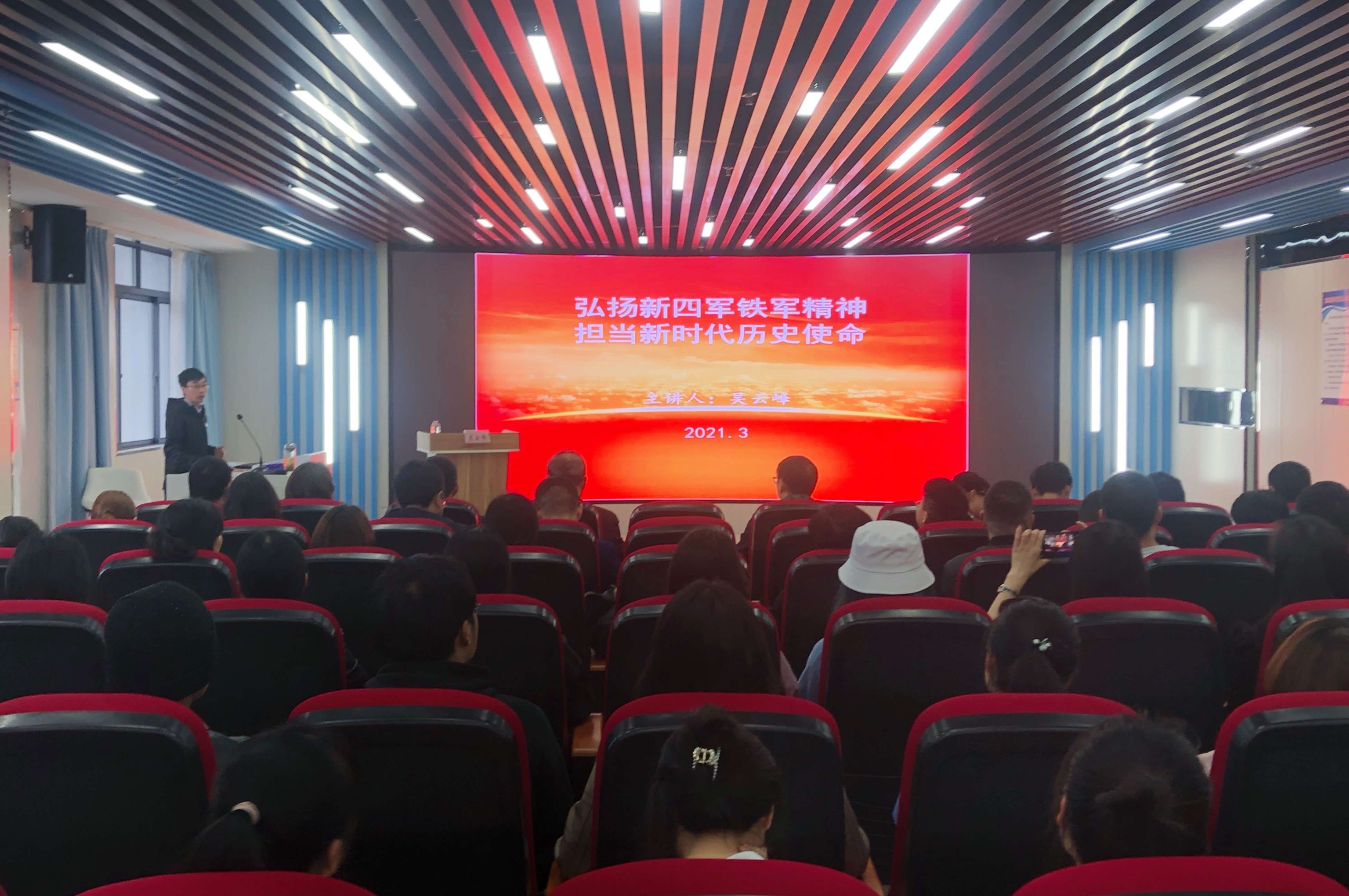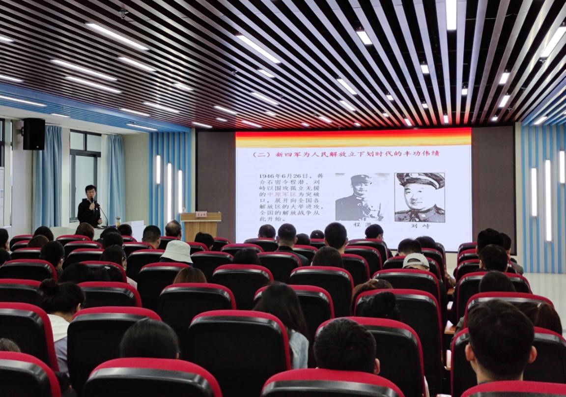4月27日下午,旅游学院在文思楼511室举办党史学习教育专题辅导报告会,马克思主义学院教授吴云峰博士应邀作主题为“弘扬新四军铁军精神,担当新时代历史使命”的报告。该院党委书记陶卫平,院党委副书记、院长金声琅,副院长孙克奎出席报告会,学院全体党员干部、教师、学生党员及学生干部代表参加报告会,报告会由陶卫平主持。