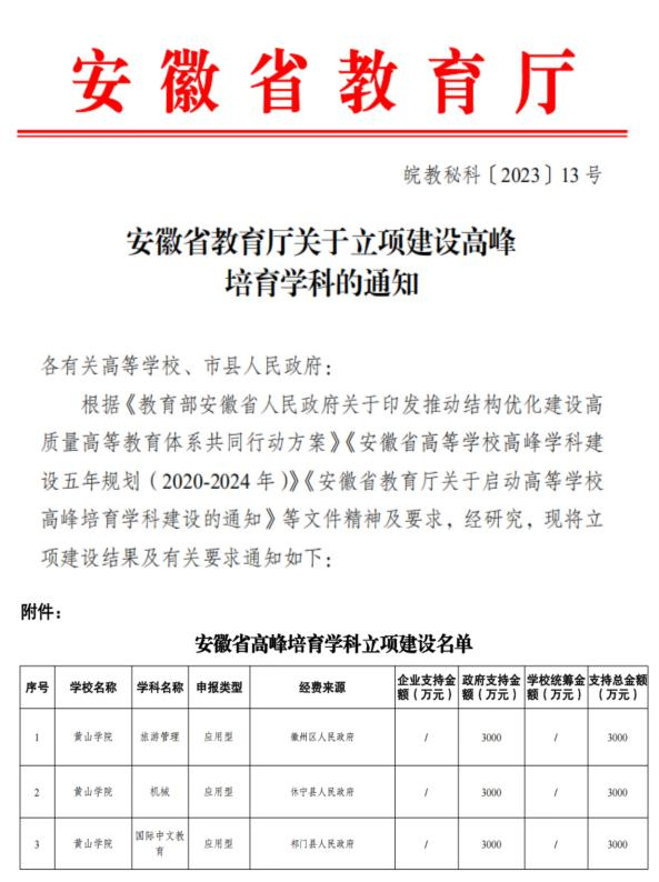 先后出台《黄山学院重点学科建设管理办法》《黄山学院一流学科暨专业硕士学位授权点培育建设实施方案(2025-2029年)》,凝练重点学科的建设方向和发展目标,明确学科建设的主要任务和关键指标,构建起“校级—省级—特色培育”三级学科体系,2021年立项建设机械工程、生物学、中国语言文学、工商管理4个校级一流学科,打造特色鲜明的学科集群。2022年,旅游管理、机械、国际中文教育3个学科获批安徽省高峰培育学科,2025年3月顺利通过教育厅验收;2024年,旅游管理入选安徽省“双特色” 建设项目(特色学科培育)。