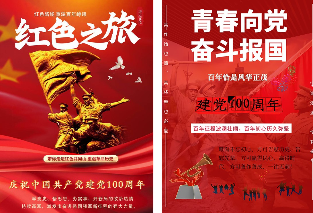 为喜迎建党100周年,丰富校园文化生活,展现同学们的软件应用及制作能力,建筑工程学院特举办“青春向党,奋斗报国”建党百年红色海报设计大赛。