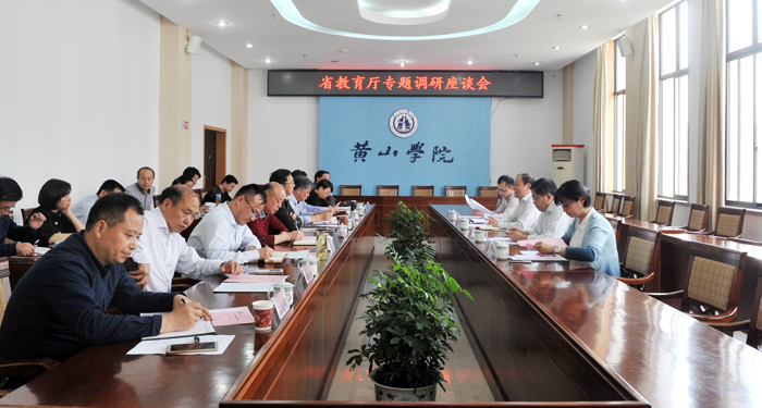 4月24日下午,省教育厅政策法规处处长郑德新、科研处处长王忠等4人组成的省教育厅调研组来我校调研指导高等教育改革与发展工作。党委书记汪枫,党委副书记、校长汪建利,党委委员、副校长胡家俊,黄山市教育局、黄山职业技术学院等单位负责人和我校相关部门负责人参加调研座谈。